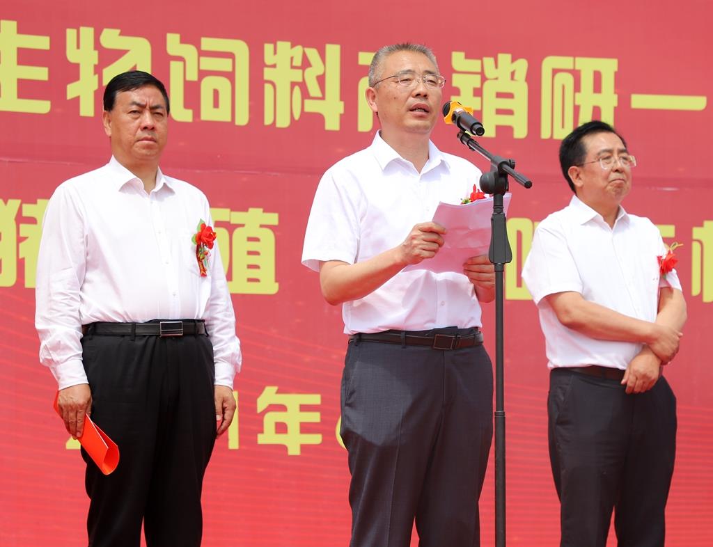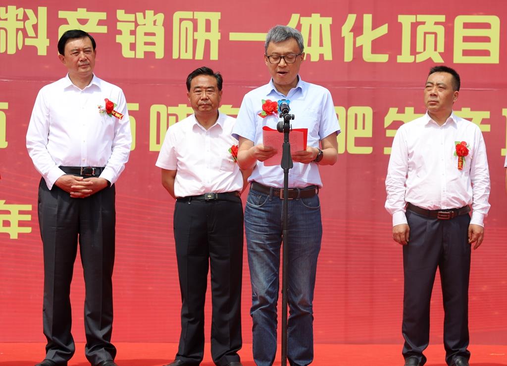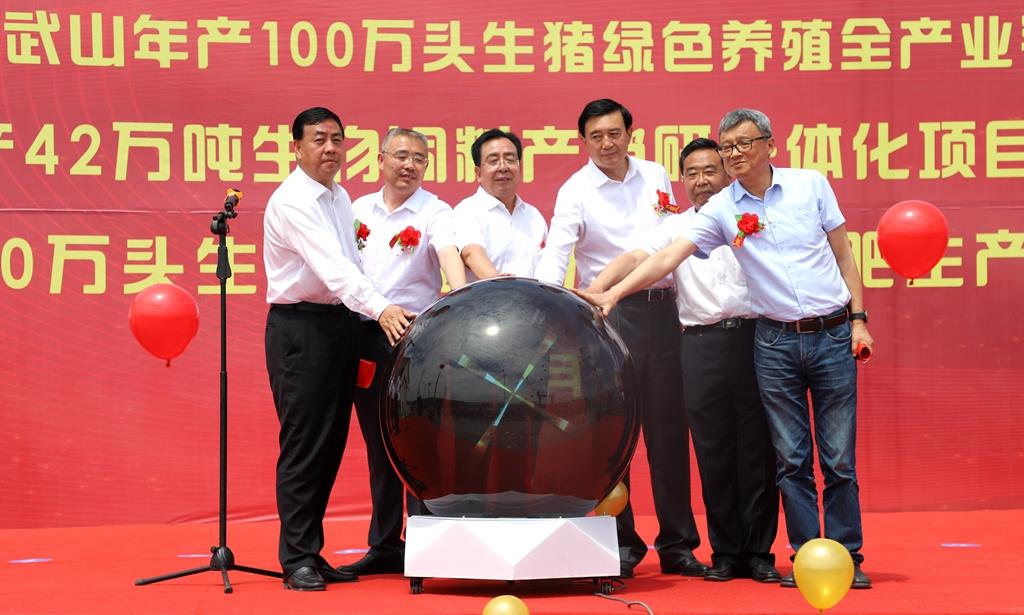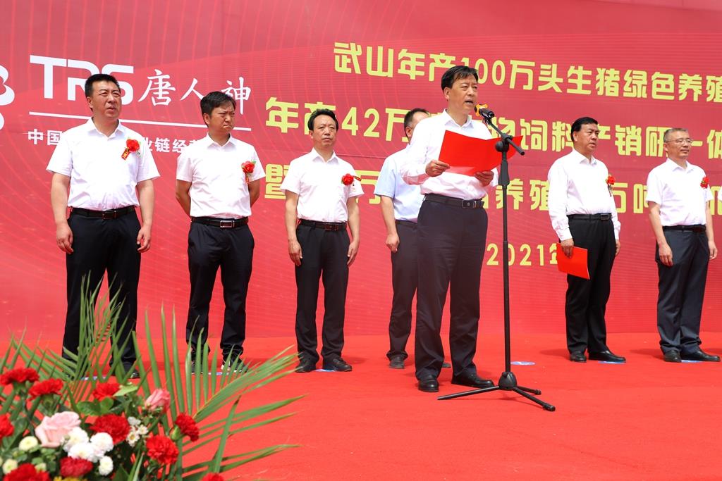 索鴻賓致辭時指出,近年來武山縣認真貫徹新發(fā)展理念,著力構建新發(fā)展格局,持續(xù)優(yōu)化營商環(huán)境,加大招商引資力度,先后引進實施了唐人神集團武山年產100萬頭生豬綠色養(yǎng)殖全產業(yè)鏈等一大批大項目、好項目,有力推動了全縣經濟社會發(fā)展。年產42萬噸生物飼料產銷研一體化項目的建成投產和30萬頭生豬養(yǎng)殖、5萬噸有機肥生產線項目的開工建設,必將有力帶動全縣畜牧、蔬菜、林果、中藥材等產業(yè)提質增效,為進一步加快鄉(xiāng)村振興進程,推動縣域經濟高質量發(fā)展注入新的強勁動力。縣委、縣政府將一如既往支持唐人神等企業(yè)發(fā)展,全面落實各項優(yōu)惠政策,認真做好協(xié)調保障工作,全力促進項目早建成、早見效。希望唐人神集團立足我縣資源優(yōu)勢,不斷擴大企業(yè)規(guī)模,努力實現(xiàn)互利共贏。希望項目實施單位精心組織、科學管理、文明施工、安全生產,努力把項目建設成為精品工程、品牌工程和民心工程,在武山這片創(chuàng)業(yè)熱土上實現(xiàn)新發(fā)展,譜寫新篇章,鑄就新輝煌。