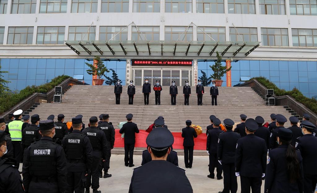 11月19日上午,武山縣公安局舉行歡迎“2004·08·12”專案組凱旋儀式,歡迎抓獲犯罪嫌疑人專案組凱旋。