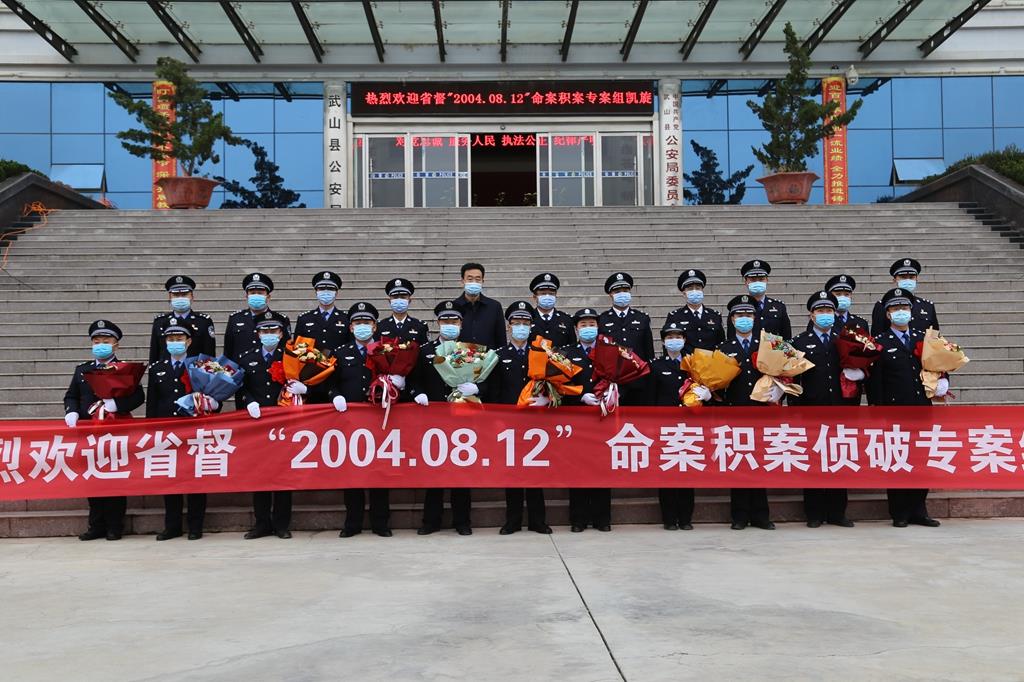 歡迎儀式上,郭慶祥、令軍強同志與凱旋而歸的專案組成員一一握手,并送上鮮花,對武山公安在攻破省督命案積案方面取得的重大戰(zhàn)果表示熱烈祝賀,向參與偵查、抓捕、審訊等工作的專案組成員致以親切慰問和感謝。李世和同志宣讀了《天水市公安局關(guān)于對武山縣公安局偵破“2004·08·12”專案的嘉獎令》。