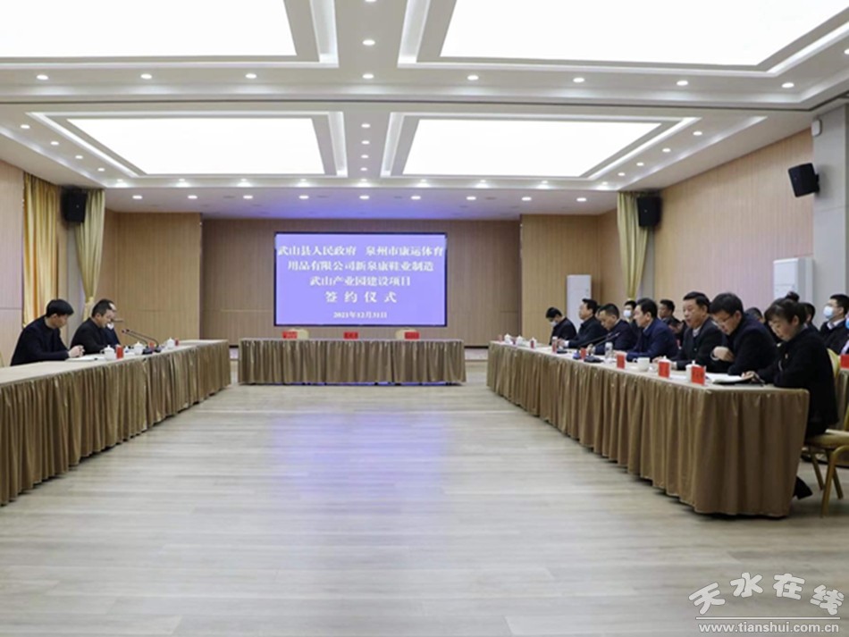 王新強(qiáng)在致辭中介紹了武山經(jīng)濟(jì)社會發(fā)展情況。他說,武山生態(tài)環(huán)境、地理環(huán)境、發(fā)展環(huán)境、交通區(qū)位等優(yōu)勢比較明顯,特別在發(fā)展現(xiàn)代農(nóng)業(yè)、工業(yè)經(jīng)濟(jì)、文旅康養(yǎng)等方面具有得天獨(dú)厚的優(yōu)勢和發(fā)展基礎(chǔ)。近年來,武山縣認(rèn)真貫徹新發(fā)展理念,積極調(diào)結(jié)構(gòu)、轉(zhuǎn)方式、促增長,全力挖掘縣域經(jīng)濟(jì)高質(zhì)量發(fā)展?jié)摿,新?jīng)濟(jì)新業(yè)態(tài)呈現(xiàn)多點(diǎn)開花、集群發(fā)展的良好態(tài)勢,為實(shí)現(xiàn)高質(zhì)量發(fā)展奠定了堅實(shí)基礎(chǔ)?h第十五次黨代會提出了形成“2+5+N”現(xiàn)代農(nóng)業(yè)產(chǎn)業(yè)布局、實(shí)施“11234”工業(yè)強(qiáng)縣戰(zhàn)略、打造“11711”全域旅游發(fā)展新格局等縣域產(chǎn)業(yè)發(fā)展思路舉措,為未來五年描繪了清晰的發(fā)展藍(lán)圖。特別是將加大入園項(xiàng)目引進(jìn)力度,持續(xù)完善水、電、路、氣、網(wǎng)等基礎(chǔ)配套設(shè)施,努力爭創(chuàng)省級工業(yè)園區(qū)。實(shí)現(xiàn)這些目標(biāo)任務(wù),需要與重大戰(zhàn)略伙伴的共同合作,完善產(chǎn)業(yè)配套、促進(jìn)產(chǎn)業(yè)升級,實(shí)現(xiàn)共同發(fā)展。這次與泉州市康運(yùn)體育用品有限公司在武山縣工業(yè)園區(qū)投資建設(shè)新泉康鞋業(yè)制造武山產(chǎn)業(yè)園項(xiàng)目,對加快武山縣工業(yè)經(jīng)濟(jì)發(fā)展,帶動群眾就業(yè),推進(jìn)鄉(xiāng)村振興戰(zhàn)略具有十分重要的意義。希望泉州市康運(yùn)體育用品有限公司以此次項(xiàng)目簽約為新的起點(diǎn),拓寬合作領(lǐng)域,加快項(xiàng)目運(yùn)作,推動項(xiàng)目早日開工建設(shè)、投產(chǎn)達(dá)效,把新泉康鞋業(yè)制造武山產(chǎn)業(yè)園打造成集高端鞋類生產(chǎn)、產(chǎn)品開發(fā)、包裝運(yùn)輸為一體的大型輕工鞋業(yè)生產(chǎn)基地。