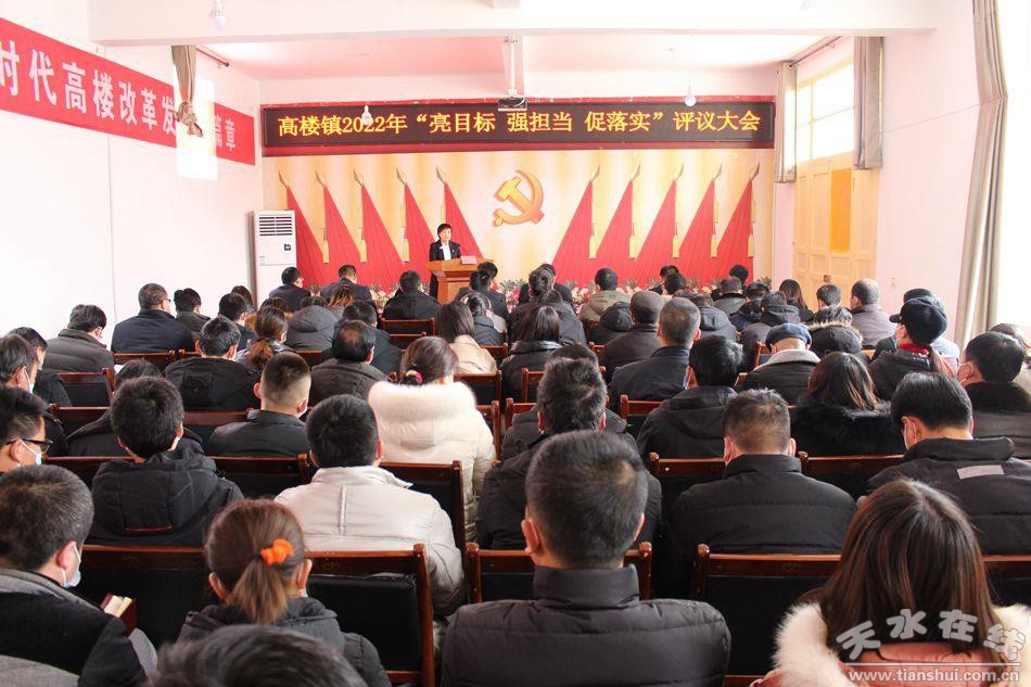 2月10日,高樓鎮(zhèn)召開2022年年初“亮目標、強擔當、促落實”評議大會。鎮(zhèn)黨政班子成員、站所負責人、全體干部和各村黨支部書記、村委會主任、公選文書共計105人參加會議。鎮(zhèn)黨委書記汪耀林參加會議并講話,鎮(zhèn)黨委副書記、鎮(zhèn)長張明明主持會議。