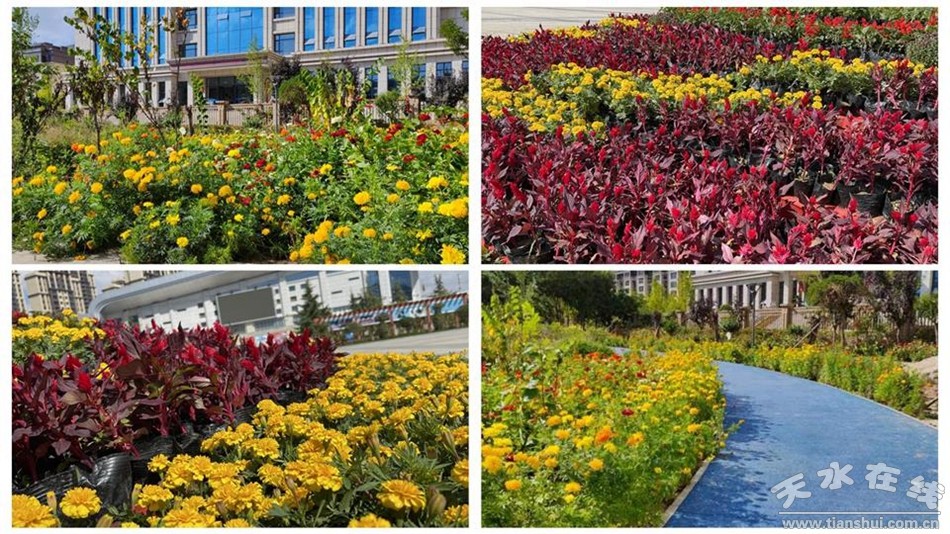 工人們加班加點、緊鑼密鼓地推進花卉景點布置,僅用時3天就完成了花卉景點布置。按照“烘托氣氛、突出重點、簡潔大氣”的布置原則,采用萬壽菊、雞冠花、孔雀草、一串紅等盆栽花卉,以盆栽花卉為基底,以花壇、黨旗、國旗等元素裝扮,為武山街頭增添了一道道靚麗的色彩。同時,精細做好花卉日常養(yǎng)護,確;ɑ芫坝^呈現(xiàn)最佳觀賞效果。