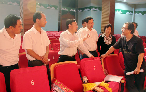 張家川縣大型音樂舞蹈史詩《關(guān)山月》定稿后,縣上組織演職人員積極開展排練,將于近期在天水秦州大劇院演出。7月4日下午,縣委副書記、縣長馬中奇,縣委常委、常務(wù)副縣長雒建明,縣委常委、宣傳部長陳鴻,副縣長馬玉鳳、徐東明,在縣委宣傳部、縣文廣局相關(guān)負責人陪同下先后來到縣青少年活動中心、縣民族劇院檢查指導了《關(guān)山月》的排練進展情況。