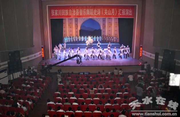 10月28日晚,天水市秦州大劇院內(nèi)座無虛席,歡歌笑語,掌聲雷鳴,由中共張家川回族自治縣委、縣人民政府主辦,縣委宣傳部、縣文化廣播影視局承辦的大型音樂舞蹈史詩《關山月》在這里為天水市人大代表、政協(xié)委員舉行匯報演出,這臺融原生態(tài)花兒、民謠、原創(chuàng)詩朗誦、原創(chuàng)歌舞等眾多藝術門類的史詩劇,充分展現(xiàn)出了張家川民間藝術的獨有魅力,讓在場的觀眾如癡如醉。演出結束后,一位觀眾高興地對記者說:“好多年沒看到這么有特色的劇目了,太震撼了!”
