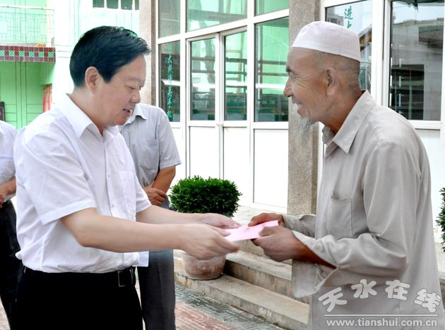 在穆斯林群眾的傳統(tǒng)節(jié)日“爾德節(jié)”即將到來之際,8月16日,市委副書記、市政協(xié)主席楊維俊,市人大副主任韓一兵,市政協(xié)副主席馬百齡一行深入張家川回族自治縣慰問了團(tuán)結(jié)寺、宣化岡拱北和困難穆斯林群眾,并通過宗教界代表人士向張家川縣廣大穆斯林致以“爾德節(jié)”的親切問候。