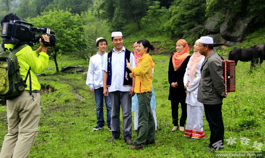 。ㄙY料圖:央視四套《遠(yuǎn)方的家》之《百山百川行》攝制組在張家川關(guān)山牧場(chǎng)取景/供圖:張家川縣新聞中心)