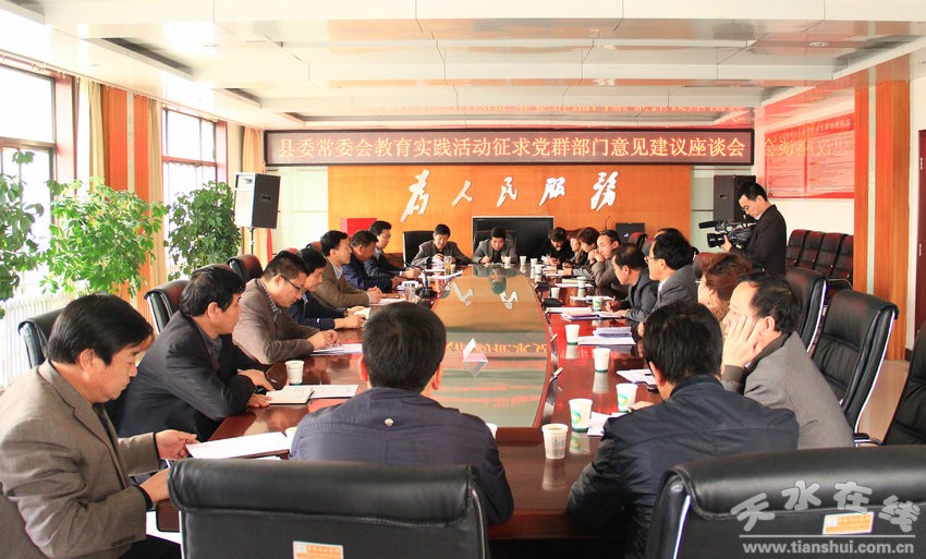 3月31日下午,張家川縣委常委、組織部長、縣委黨的群眾路線教育實踐活動領導小組副組長、辦公室主任馮建新主持召開了縣委常委會教育實踐活動征求黨群部門意見建議座談會。