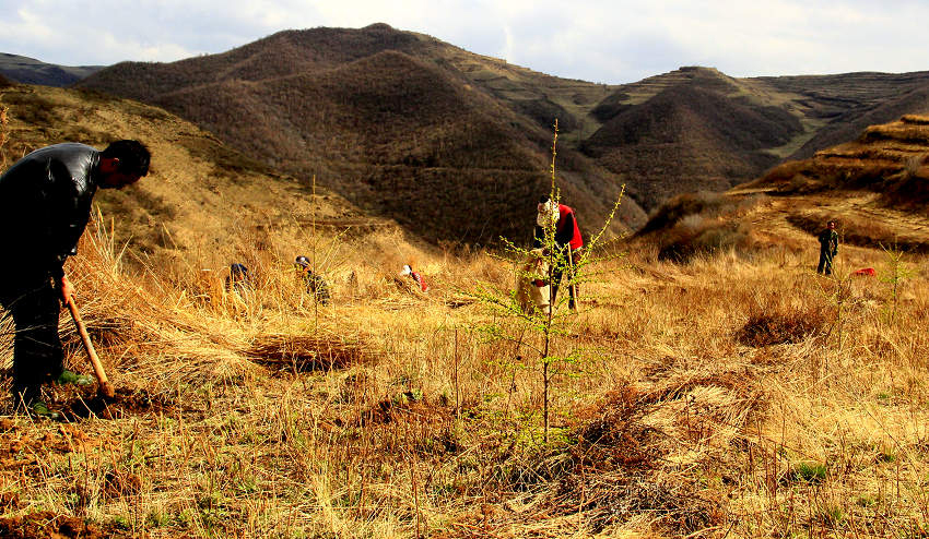 ▲ 張家川縣國家木材戰(zhàn)略儲備項目地內(nèi)林場職工栽植紅樺