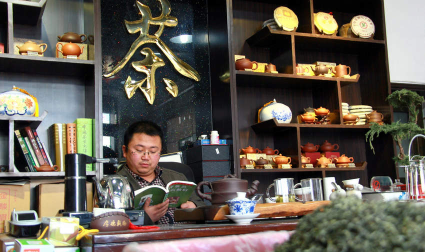 4月22日,縣城里一個茶葉鋪的老板,悠閑的閱讀著《評茶員培訓(xùn)教材》,用他的話來說,看這本書不是為了得到評茶員這樣一個身份,學(xué)習(xí)里面的茶葉知識才是最重要的。 |
