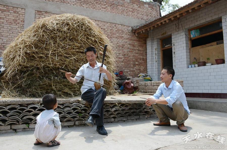 自學(xué)成才的劉孟新不光熱愛書畫藝術(shù),他更加熱愛秦腔藝術(shù),他認(rèn)為秦腔藝術(shù)是老祖先留給我們的寶貴財(cái)富,每當(dāng)他苦悶時(shí),他就會用板胡拉一段秦腔曲牌,拉出他的喜怒哀樂。如今,他白天在田地里勞動,晚上就去村里參加秦腔自樂班的節(jié)目排練。他不光會拉板胡,二胡也會拉,現(xiàn)在還打揚(yáng)琴。