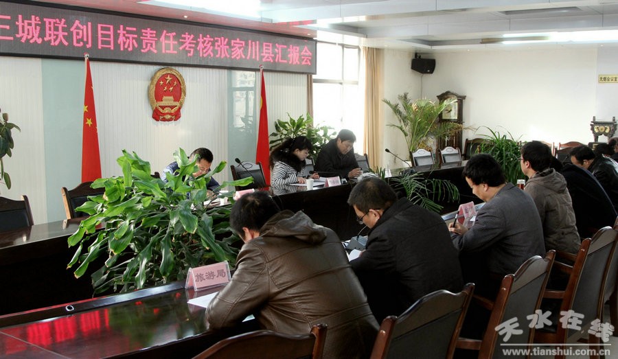 12月15日下午,天水市“三城聯(lián)創(chuàng)”工作領(lǐng)導(dǎo)小組辦公室副主任張冬梅帶領(lǐng)考核組一行,對張家川回族自治縣2014年“三城聯(lián)創(chuàng)”工作進行考核?h委常委、常務(wù)副縣長夏草及相關(guān)部門負(fù)責(zé)人參加考核。當(dāng)天,考核組深入張家川城區(qū)生活污水處理廠、城區(qū)集中供熱工程熱源廠、縣文化影視中心等地,通過實地查看、聽取匯報、座談交流等方式,詳細(xì)了解全縣2014年“三城聯(lián)創(chuàng)”工作開展情況。