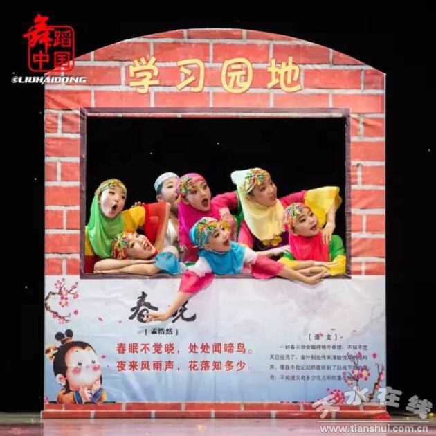 少兒舞蹈《明天我要上學(xué)了》以張家川偏遠山區(qū)少數(shù)民族孩子的生活和學(xué)習(xí)為創(chuàng)作素材,再現(xiàn)了山區(qū)孩子積極樂觀的生活態(tài)度和精神風(fēng)貌。舞蹈均使用了張家川“花兒”的音樂元素,以其濃郁的當(dāng)代民族特色和風(fēng)情,清新淳樸的編排風(fēng)格,新穎的舞蹈題材,充滿童心童趣和童真的表演,震懾了現(xiàn)場觀眾,贏得了評委的好評。