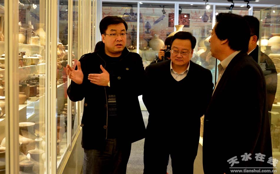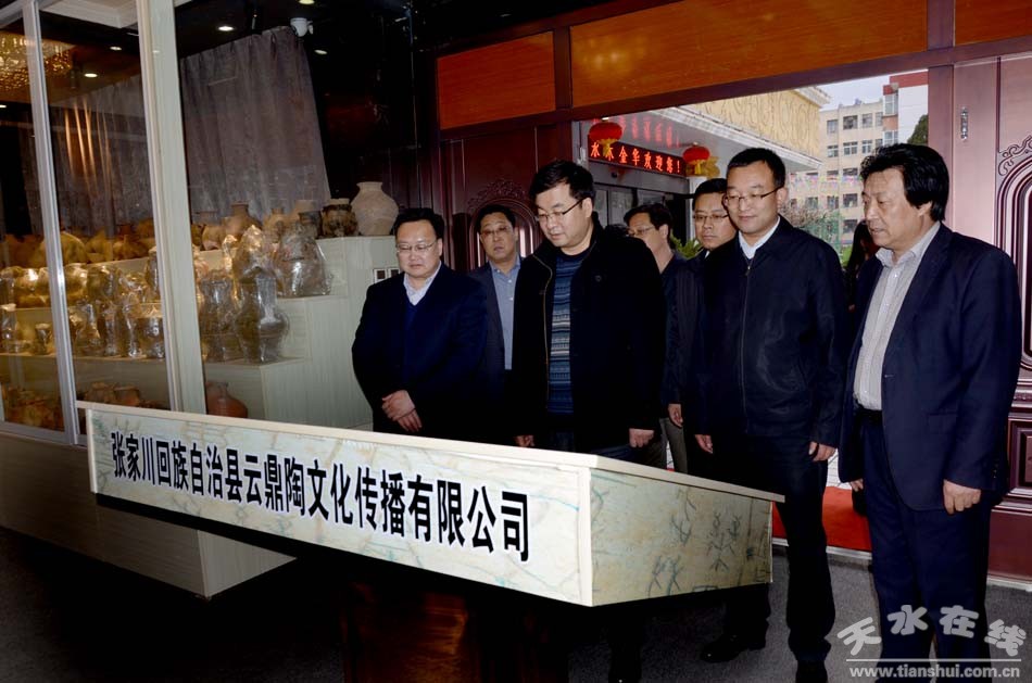當日,王正茂一行先后深入云鼎陶文化民間陳列館、張家川縣一中、宣化岡拱北、馬家塬遺址、縣扶貧辦勵志教育基地以及民族博物館等地,就張家川縣文化產(chǎn)業(yè)發(fā)展情況進行了實地調(diào)研,詳細了解了張家川縣文化產(chǎn)業(yè)發(fā)展情況。