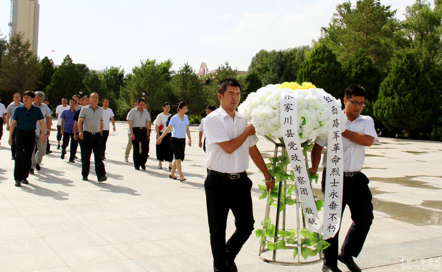 在烈士紀(jì)念碑前,考察團(tuán)成員懷著無比崇敬的心情瞻仰了烈士紀(jì)念碑。在烈士紀(jì)念館,考察團(tuán)成員參觀了革命史料展廳等,聆聽了講解員講述的軍長董振堂、政治部主任楊克明等英雄的事跡。通過此次緬懷革命先烈活動,考察團(tuán)重溫了革命時期的艱苦歲月及感人事跡,心靈受到洗禮,思想得到升華,意志得到錘煉?疾靾F(tuán)成員一致表示,將進(jìn)一步弘揚愛國主義精神,提升為群眾服務(wù)的價值觀,繼續(xù)發(fā)揚艱苦奮斗、頑強(qiáng)拼搏的革命精神,以中國共產(chǎn)黨抗戰(zhàn)英雄英烈的光輝事跡為指引,緊密團(tuán)結(jié)在以習(xí)近平同志為核心的黨中央周圍,用“四個意識”凝聚繼續(xù)前進(jìn)的強(qiáng)大力量,堅定信念向前進(jìn),不忘初心跟黨走,努力為黨的十九大勝利召開營造良好氛圍,為建設(shè)幸福美好張家川貢獻(xiàn)力量。