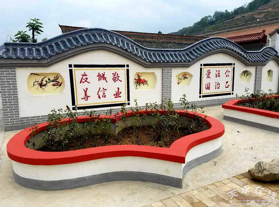 張家川縣大陽鎮(zhèn)下李村文化廣場上與24字核心價值觀相關(guān)的元素