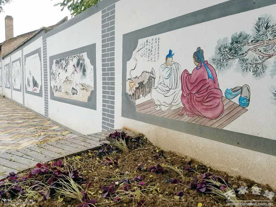 張家川縣龍山鎮(zhèn)汪堡村文化公園墻壁上體現(xiàn)中華優(yōu)秀傳統(tǒng)文化的彩繪
