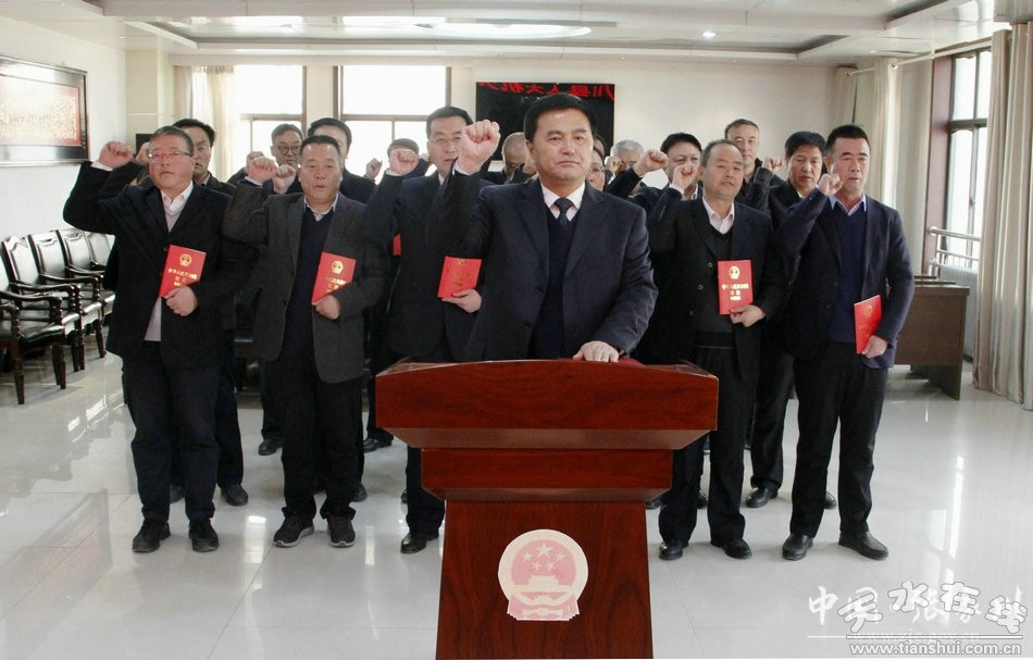 “我宣誓:忠于中華人民共和國憲法,維護憲法權(quán)威,履行法定職責(zé),忠于祖國、忠于人民,恪盡職守、廉潔奉公,接受人民監(jiān)督,為建設(shè)富強、民主、文明、和諧的社會主義國家努力奮斗!”洪亮的宣誓聲回響在會場。宣誓活動現(xiàn)場,宣誓人同唱中華人民共和國國歌。隨后,由李肖鋒領(lǐng)誓,宣誓人左手撫按《中華人民共和國憲法》文本,右手舉拳,莊嚴宣誓。