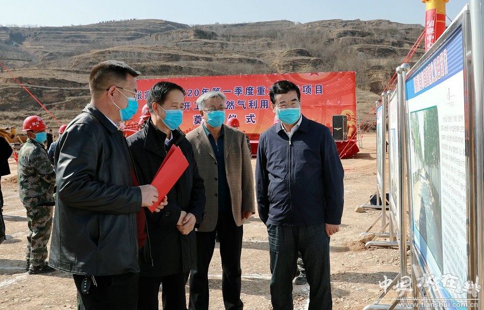 蘇定武宣布張家川縣2020年第一季度重大建設項目開工,市發(fā)改委及項目業(yè)主、施工企業(yè)代表分別作發(fā)言。隨后,出席活動的各位領導為張家川縣天然氣利用工程培土奠基。
