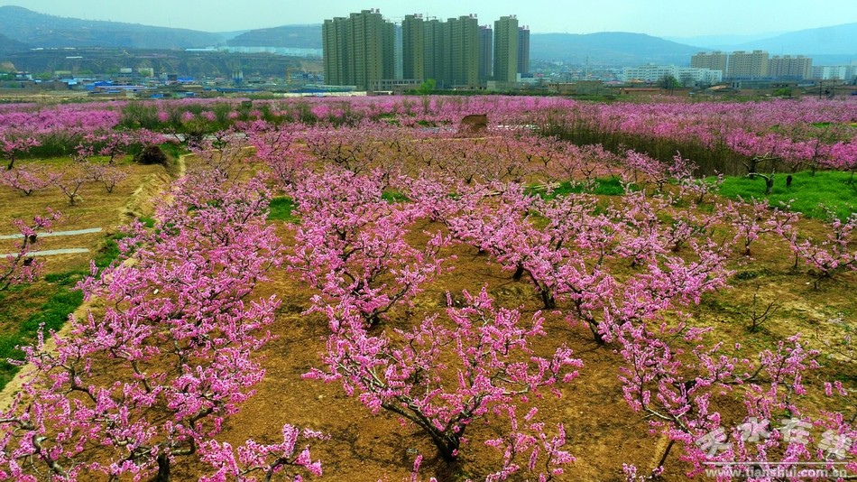 (秦安縣西川鎮(zhèn)李堡村桃園景區(qū) 天水在線4月14日航拍)