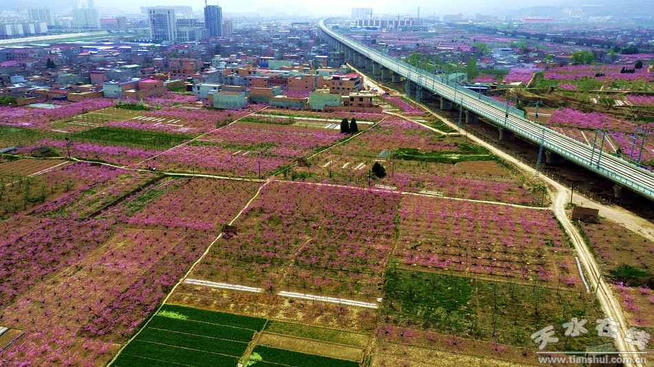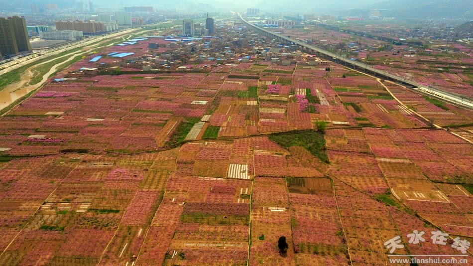 天水在線4月14日報道 有詩云:夜宿桃花村,踏歌接天曉,以天地為親,桃花為友,那自由自在、無拘無束的感覺撲面而來,仰首見桃花,低頭瓣瓣雨。