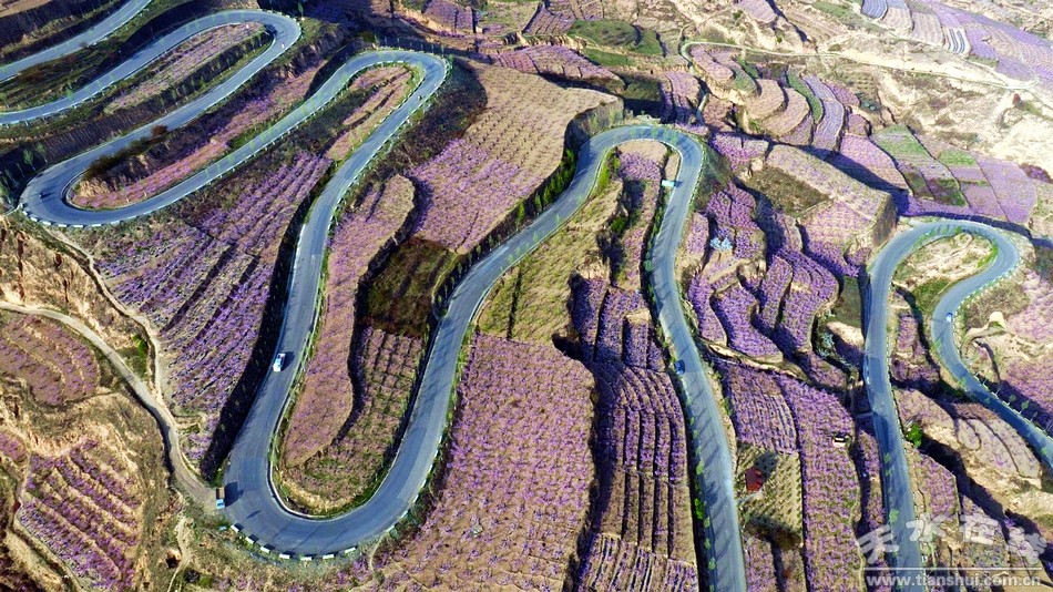 “如果你是一位風光攝影師,不到元陽,上帝也會為你悲哀。”這句在攝影界頗為流行的話足以證明元陽梯田的美麗。云南元陽梯田是哈尼族人歷時1300多年雕刻的“大地雕塑”,在那里,崇山峻嶺中幾千級梯田傾瀉而下,那是面與面交疊的美麗,線與線交匯的神奇,線與面交融的感嘆。都說元陽梯田美得如同夢境,而在天水市秦安縣西川鎮(zhèn)宋場村、李堡村和劉坪鄉(xiāng)秦洼村,也有堪比元陽的百里桃花梯田,這里勤勞智慧的人們,將陡峭的山坡改為梯田,創(chuàng)造了這雄偉壯觀的美景,孕育了一代又一代人,展現(xiàn)了秦安絕美壯麗的梯田和底蘊深厚的文化。