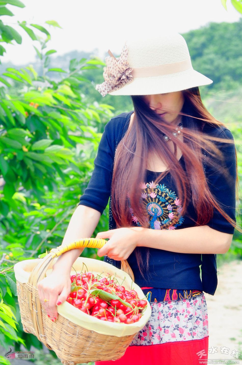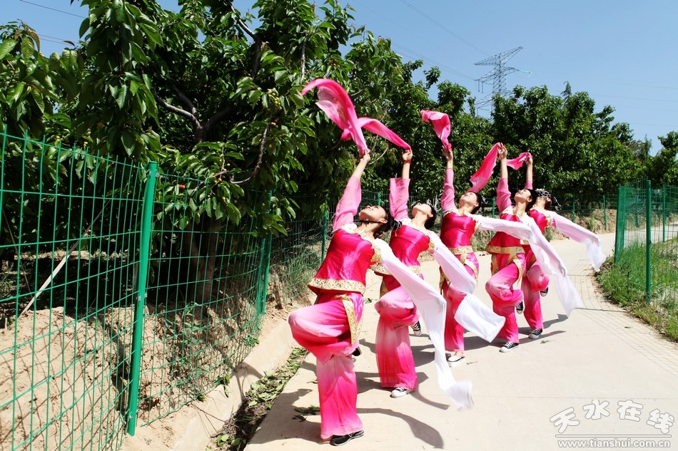 (2009年5月24日上午,參加天水在線“周日自駕游 品嘗煙鋪大櫻桃”活動(dòng)的自駕游游客走進(jìn)煙鋪櫻桃園。)