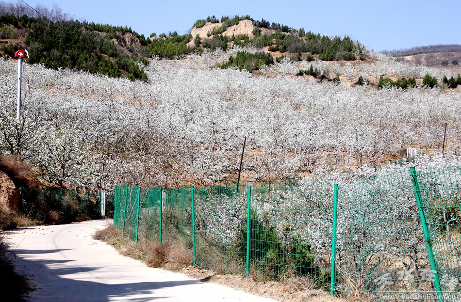 “開(kāi)花占得春光早,雪綴云裝萬(wàn)萼輕!庇值搅藷熶仚烟一ㄩ_(kāi)的時(shí)候,你不防從天水城北側(cè)驅(qū)車(chē)進(jìn)入羅峪溝,五分鐘就能到達(dá)煙鋪村里,置身大櫻桃的花海中,感受花如雪、花如海式的醉美與震憾!