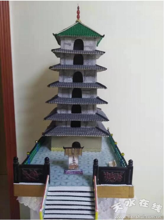 趙秦明介紹:“這些作品都是利用一些廢棄品一個(gè)一個(gè)比劃著做出來(lái)的,我從小就喜歡手工制作,這也是我一直以來(lái)的夢(mèng)想!我想完成年輕時(shí)的夢(mèng)想,把咱天水的所有古建筑全部用手工做出來(lái),也為天水貢獻(xiàn)自己的一份力量,讓更多的人了解我們天水8000年深厚文化,讓更多的人走進(jìn)天水,愛上天水!