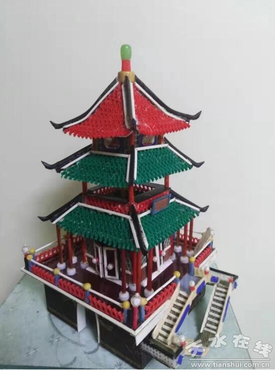 一把剪刀,一堆廢舊材料,一瓶膠水,幾把刻刀,加上用心觀察,細(xì)心構(gòu)思,將天水的歷史古建筑精美的呈現(xiàn),這是天水市一位普通退休工人趙秦明的業(yè)余生活。