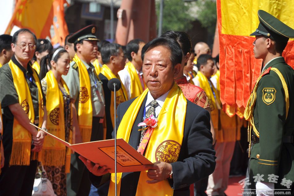 ▲甘肅省人大常委會原副主任、甘肅省伏羲文化研究會理事長程有清主持儀式 攝影:天水在線