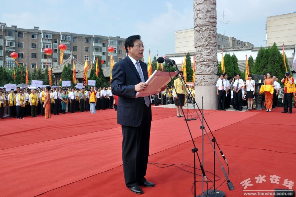 2010年5月15日上午10時(shí),2010(庚寅)年甘肅省公祭中華人文始祖伏羲大典暨第二十一屆天水伏羲文化旅游節(jié)宣傳推介會(huì)在深圳迎賓館舉行,甘肅省政府新聞辦公室主任梁和平主持會(huì)議。天水市委副書記張應(yīng)華,天水市委常委、宣傳部長(zhǎng)王光慶回答了記者的提問。