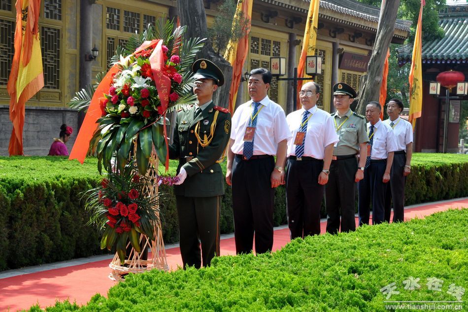 ▲天水市五大組織領(lǐng)導(dǎo)敬獻(xiàn)花籃