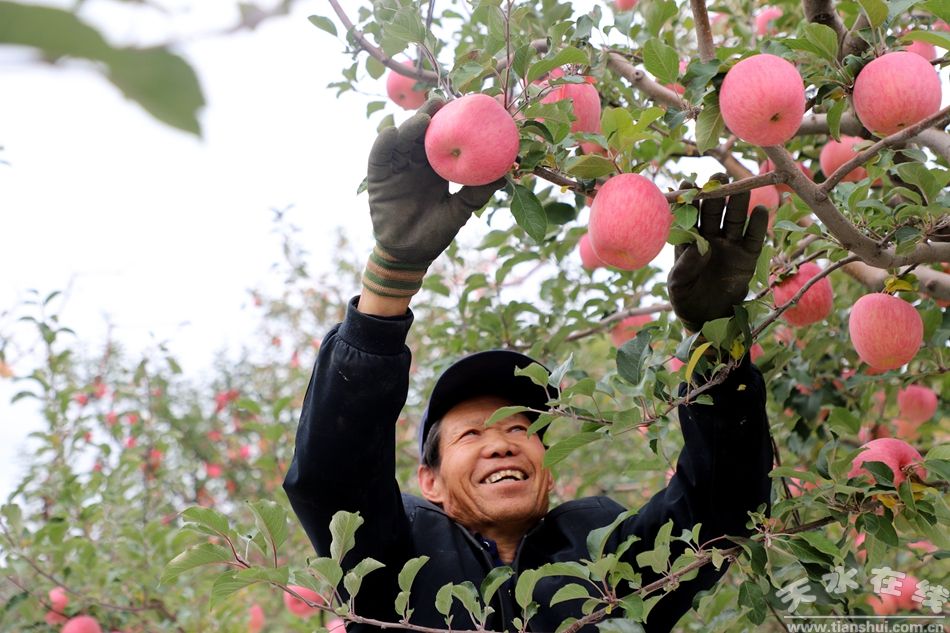 天水農耕文明向現(xiàn)代農業(yè)轉型跨越的閃光詩行里,首屈一指的花牛蘋果,來得較晚,長得紅艷,看著喜慶,聞起來,清香怡人,吃起來,甜到心坎,直把后來者居上的含義,寫成舉世公認的元帥系“世界蘋果最佳優(yōu)生區(qū)”之一,寫成農業(yè)主導產業(yè)的鋪天蓋地,寫成天水物華金字招牌的輝光無限。
