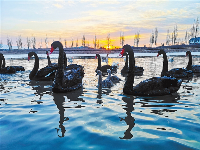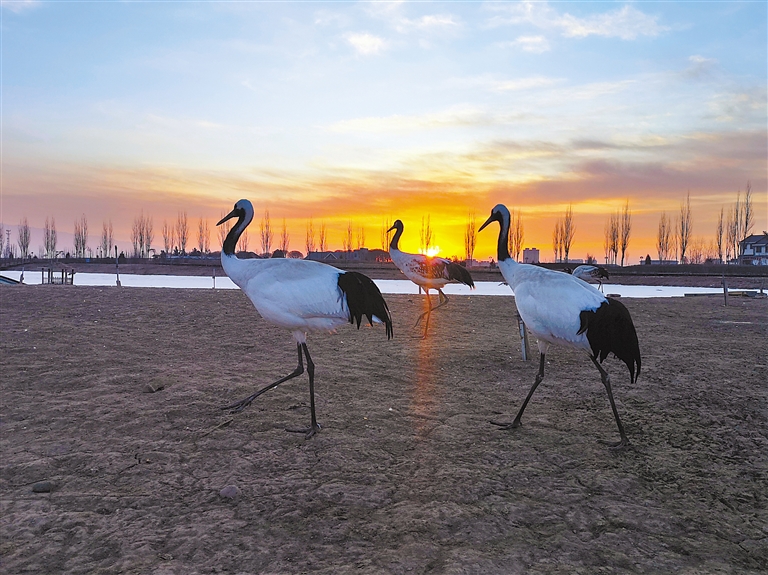 冬日的張掖國家濕地公園丹頂鶴、黑天鵝、朗德鵝、斑頭雁等沐浴在清晨的陽光下。這里良好的生態(tài)環(huán)境吸引了眾多候鳥棲息。新甘肅·甘肅日報通訊員 成 林