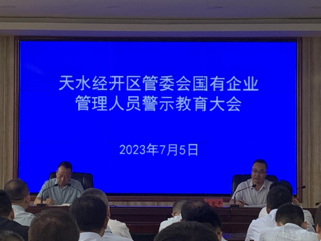 7月5日上午天水經(jīng)開區(qū)召開國(guó)有企業(yè)管理人員警示教育大會(huì),財(cái)政局全體干部及經(jīng)開區(qū)管委會(huì)所屬天水經(jīng)濟(jì)發(fā)展有限責(zé)任公司、天水興陽(yáng)建設(shè)發(fā)展有限責(zé)任公司、天水經(jīng)濟(jì)技術(shù)開發(fā)區(qū)融資擔(dān)保有限公司、天水經(jīng)濟(jì)技術(shù)開發(fā)區(qū)投資有限公司等4個(gè)國(guó)有企業(yè)管理人員70余人參加了會(huì)議。會(huì)議由黨工委副書記、紀(jì)檢監(jiān)察工委書記于愛平主持。