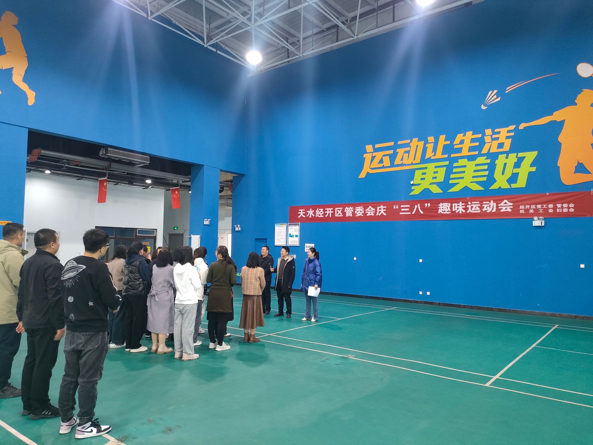 春和景明,萬象更新。在第114個“三八”國際勞動婦女節(jié)來臨之際,為進一步豐富女干部職工文化生活,營造濃厚的節(jié)日氛圍,讓全體女職工度過一個健康、和諧、愉悅而有意義的節(jié)日,天水經(jīng)開區(qū)黨工委、管委會、機關(guān)工會、婦委會聯(lián)合組織開展了“慶三八”趣味運動會。管委會機關(guān)、財政局、政務服務中心全體女干部職工共50余人參加。