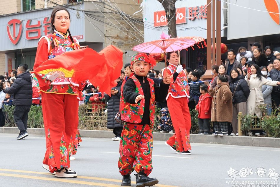 中午12時30分,匯演正式拉開帷幕,現(xiàn)場瞬間成為歡樂的海洋。從南關十字到友誼飯店十字路口,數(shù)公里長的街道兩側早已被聞訊而來的市民圍得水泄不通,男女老少踮腳張望、舉機記錄,一張張臉上都洋溢著喜慶的笑容!疤匾鈳е以缭缇蛠碚嘉恢茫@么盛大的匯演一年就盼一回,熱鬧又暖心,這才是咱們甘谷最正宗的年味兒!”市民張師傅一邊拍攝一邊笑著說。