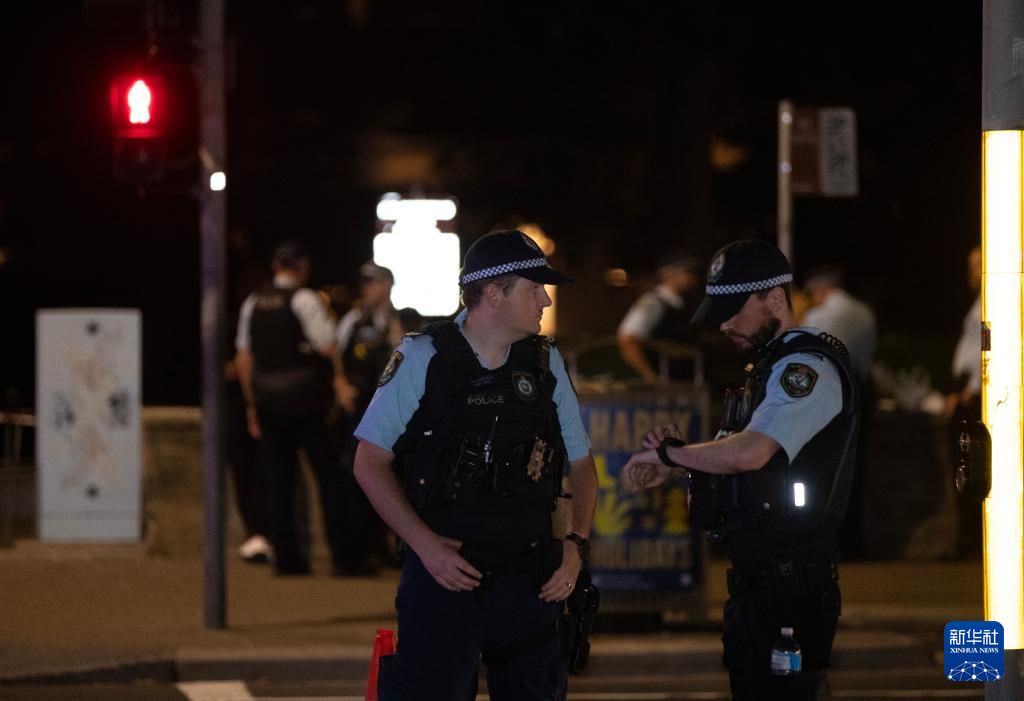 12月14日,在澳大利亞悉尼,警察在邦迪灘槍擊事件附近區(qū)域執(zhí)勤。新華社記者 馬平 攝