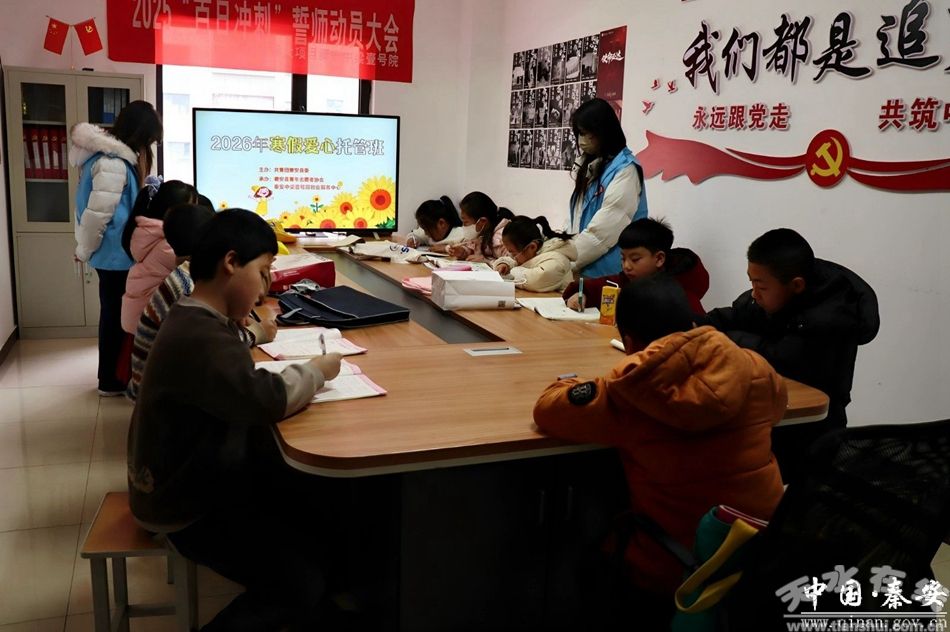 為切實(shí)解決寒假期間家長“看護(hù)難”問題,讓孩子們度過一個安全、充實(shí)、有意義的假期,近日,由共青團(tuán)秦安縣委主辦、秦安縣青年志愿者協(xié)會承辦的寒假愛心托管班,在令牌玖號院物業(yè)中心和中梁壹號院物業(yè)中心同步開班。來自返鄉(xiāng)高校的大學(xué)生志愿者化身“愛心園丁”,用陪伴與堅(jiān)守為孩子們的假期增添溫暖底色。