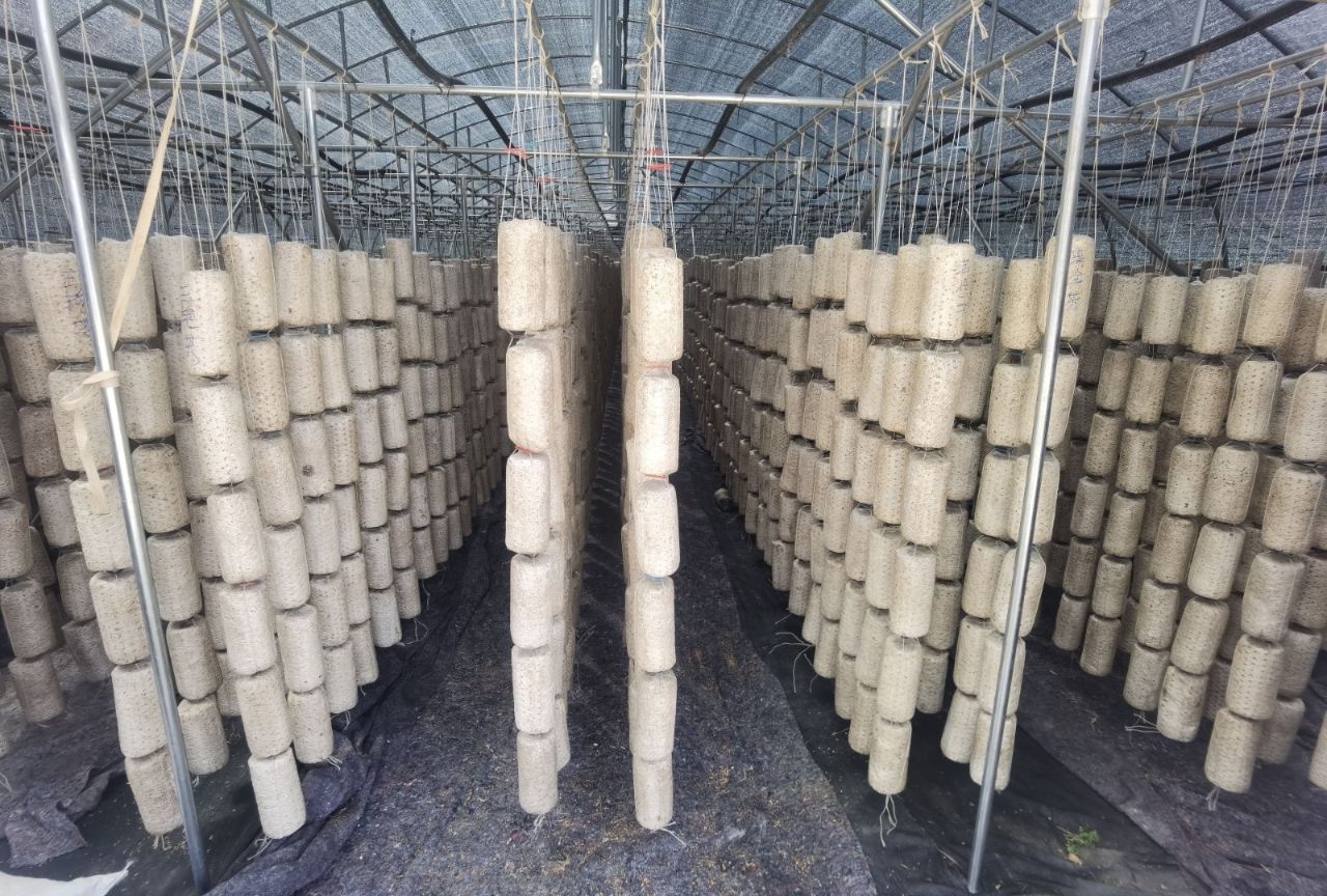 踏入種植大棚,溫暖潮濕的氣息裹挾著滑子菇特有的鮮香撲面而來,只見一排排菌棒整齊排列,一朵朵滑子菇從菌棒中探出頭來,密密麻麻,他們頭戴圓潤的深褐色“小帽”,身著透明“粘液披風(fēng)”,在燈光與細(xì)密水珠的映襯下,晶瑩剔透,長勢十分喜人。同時(shí),大棚內(nèi)的白玉木耳和黑木耳菌棒也已經(jīng)開始進(jìn)棚養(yǎng)菌,地?cái)[木耳種植田起壟、搭架等前期準(zhǔn)備工作也已全部就緒。