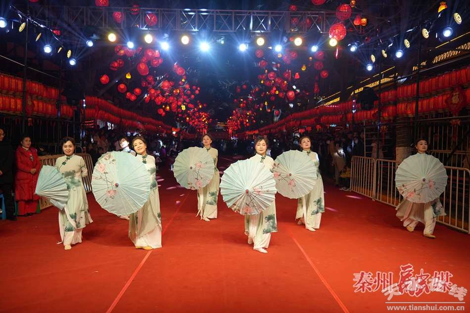 同時,秦州區(qū)文旅局還給現(xiàn)場的觀眾們獻上了精心準備的歌舞節(jié)目,演員們邊歌邊舞,用優(yōu)美的舞姿和歡快的曲調(diào),展現(xiàn)出對美好生活的贊美和對新年的美好祝愿。精彩的表演讓本地市民和外地游客都沉浸在濃濃的年味當(dāng)中。
