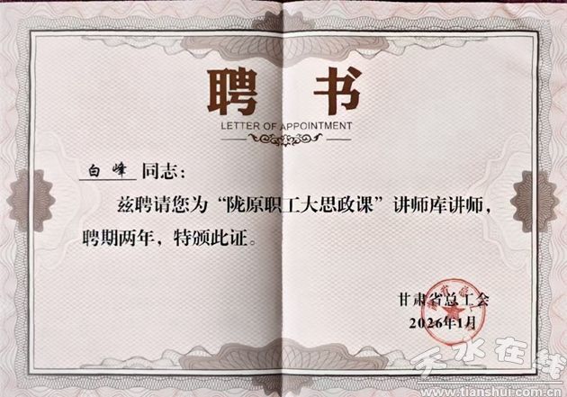 白峰,甘肅省五一勞動獎?wù)芦@得者、思想政治工作研究員,深耕企業(yè)多年,在多崗位中積累了豐富的管理經(jīng)驗與理論素養(yǎng)。他表示,將以此次受聘為契機(jī),認(rèn)真履行講師職責(zé),將企業(yè)發(fā)展實踐、一線工作感悟與思政教育深度融合,引導(dǎo)職工堅定理想信念、提升綜合能力。