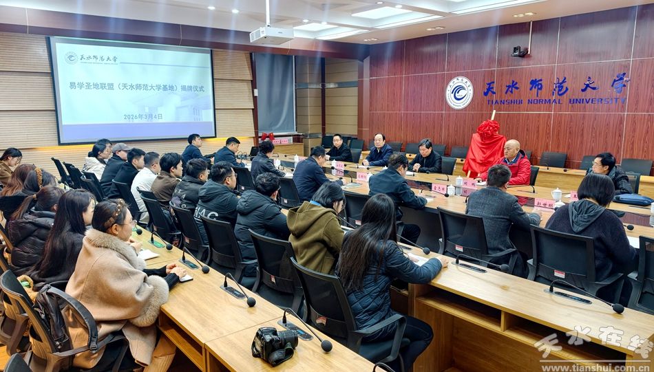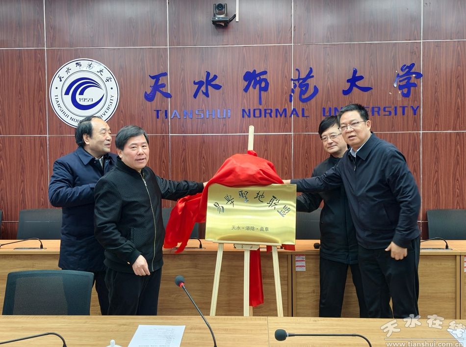 3月4日上午,易學(xué)圣地聯(lián)盟天水師范大學(xué)基地揭牌儀式在天水師大舉行。儀式上,天水師大學(xué)校黨委常委、副校長(zhǎng)左國(guó)防,伏羲文化研究院院長(zhǎng)霍志軍,聯(lián)盟主席劉彬,天水市周易學(xué)會(huì)會(huì)長(zhǎng)安志宏共同為基地揭牌。