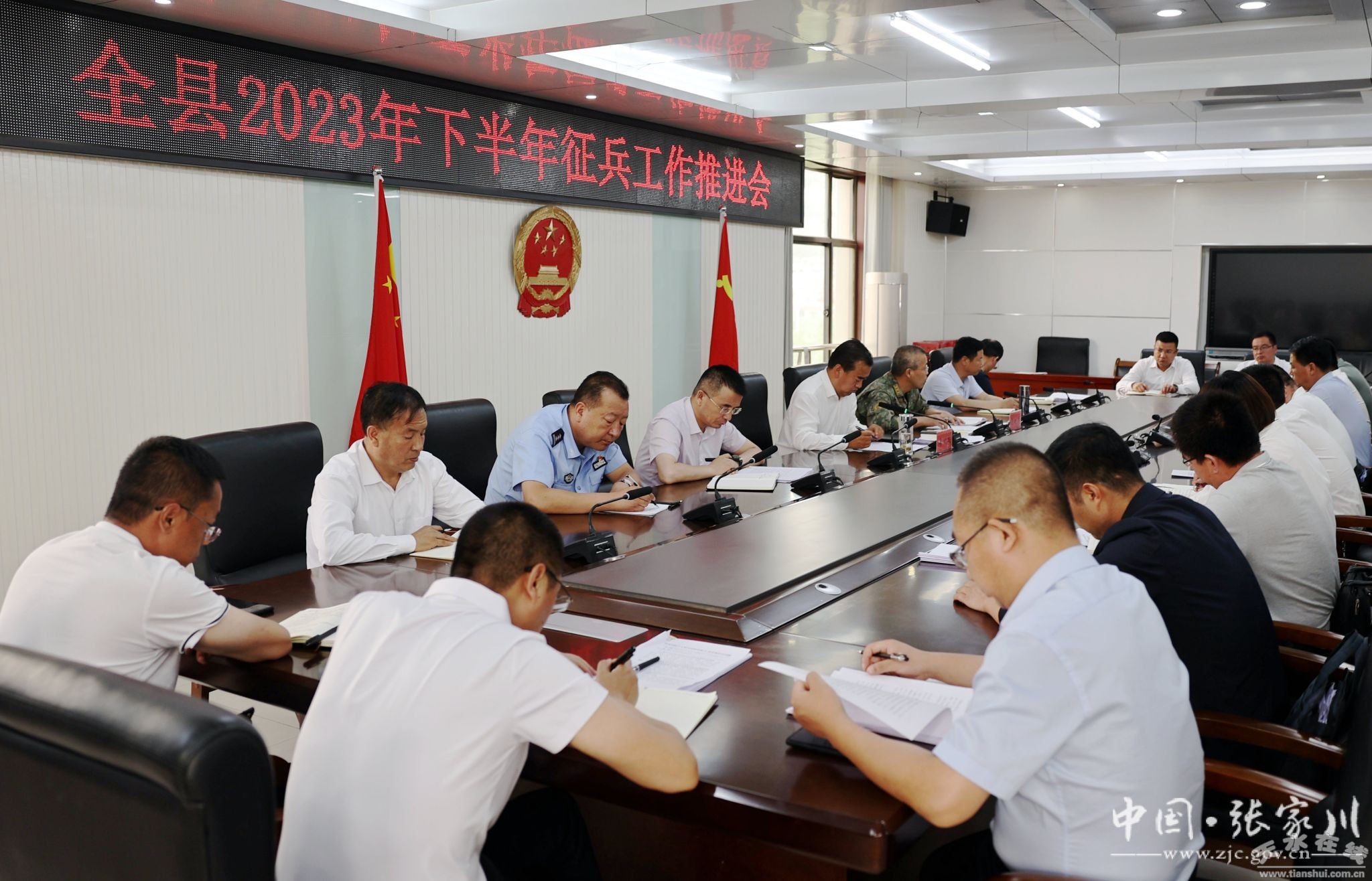 7月18日,張家川縣召開2023年下半年征兵工作推進(jìn)會(huì)議,深入貫徹全國2023年下半年征兵工作電視電話會(huì)議精神,傳達(dá)學(xué)習(xí)省市征兵工作會(huì)議精神和工作要求,安排部署2023年下半年全縣征兵工作?h委副書記、縣長、縣征兵工作領(lǐng)導(dǎo)小組組長馬創(chuàng)成出席會(huì)議并講話?h委常委、人武部部長、縣征兵工作領(lǐng)導(dǎo)小組副組長黨曉軍主持會(huì)議。