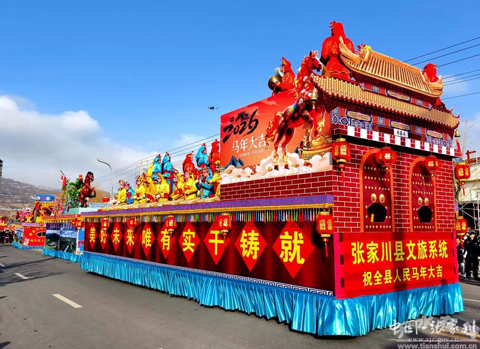 匯演現(xiàn)場,彩綢翻飛如駿馬馳騁,鑼鼓齊鳴似萬馬奔騰,彩車巡展特色鮮明,社火表演精彩紛呈,每一支隊伍都用精心編排的節(jié)目展現(xiàn)著張家川兒女的精神風(fēng)貌,為現(xiàn)場觀眾獻(xiàn)上了一場獨具地方特色的民俗文化盛宴,讓現(xiàn)場年味濃郁、熱鬧非凡。